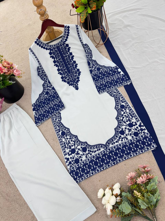 🌸 Exclusive Elegant Embroidered Top Palazzo with Dupatta Set