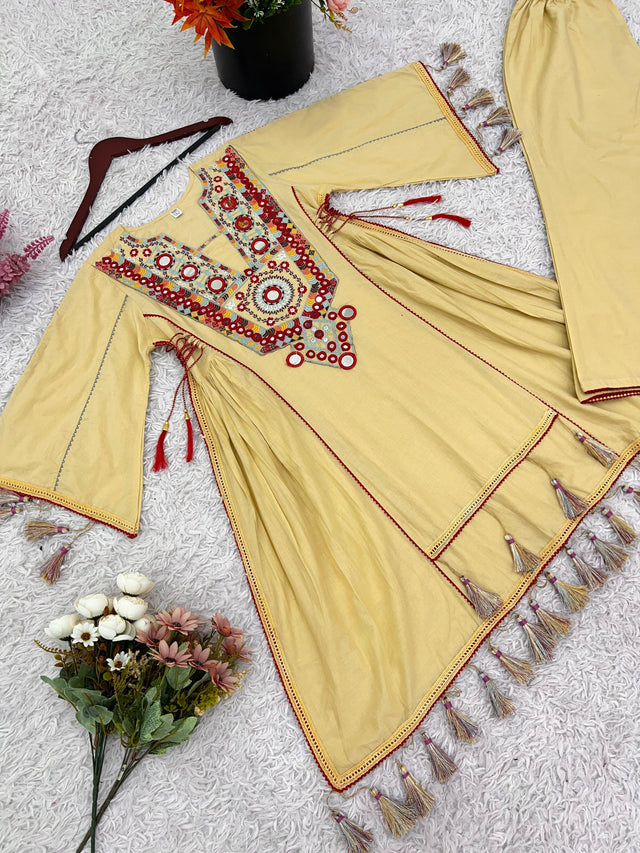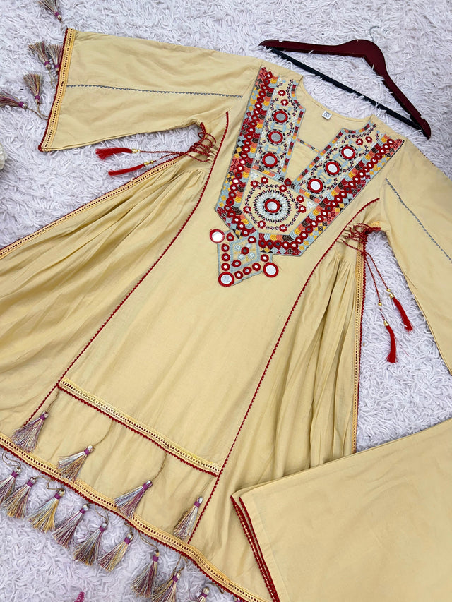 Pure Khadi Cotton With Embroidery Sequence Work With Real Mirror Work๐๐