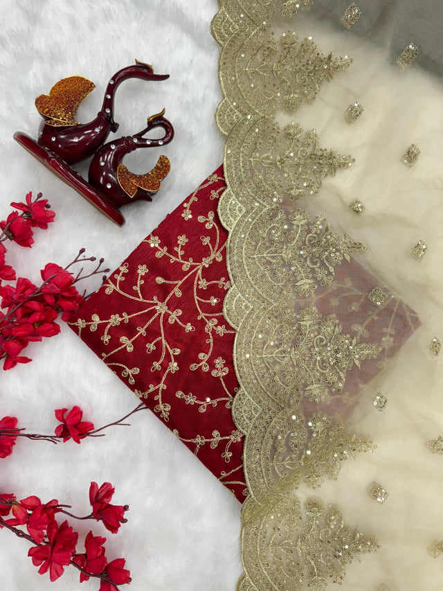 | Fabric | Banglori Silk with cording sequins embroidery work |