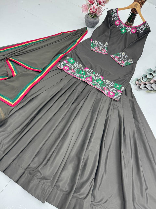 Good Looking Black Color Top With Lehenga