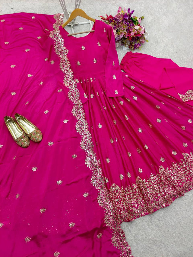 Gown Fabric : Pure Cinon Silk With Heavy Embroidery 5mm Sequence Work With Full 24-25 Inch Sleeve With (Attached Ped)