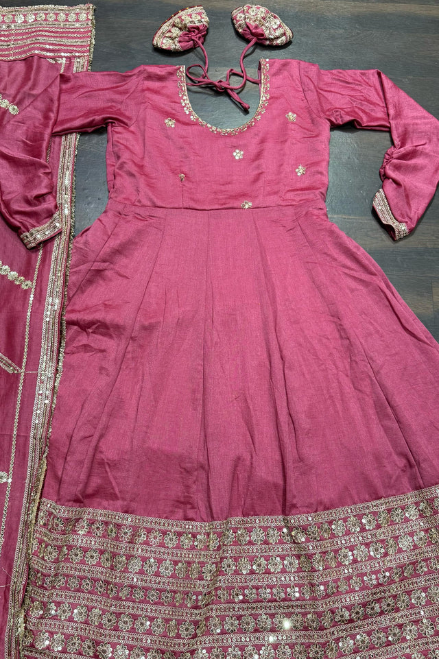 👉🏻 FABRIC & WORK:- Chinon silk with Embroidery Zari-Codding Sequins work And Dori Latkan