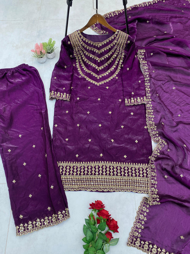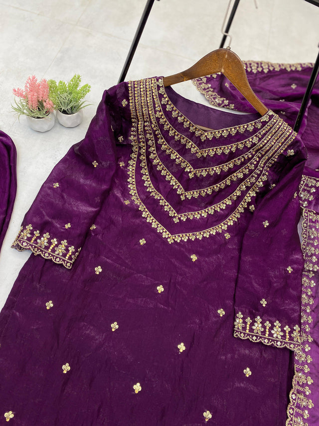 Good Looking Embroidery Work Wine Color Palazzo Suit