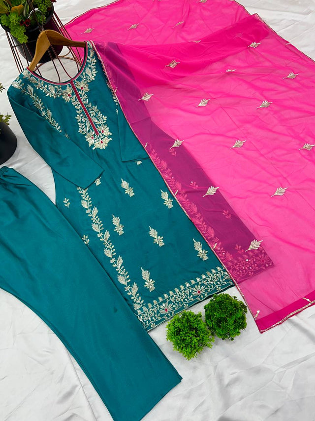 Good Looking Heavy Embroidery Sequence Work Teal Blue Color Salwar Suit