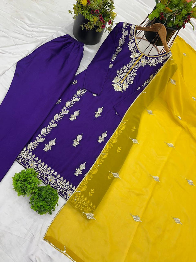 Good Looking Heavy Embroidery Sequence Work Purple Color Salwar Suit
