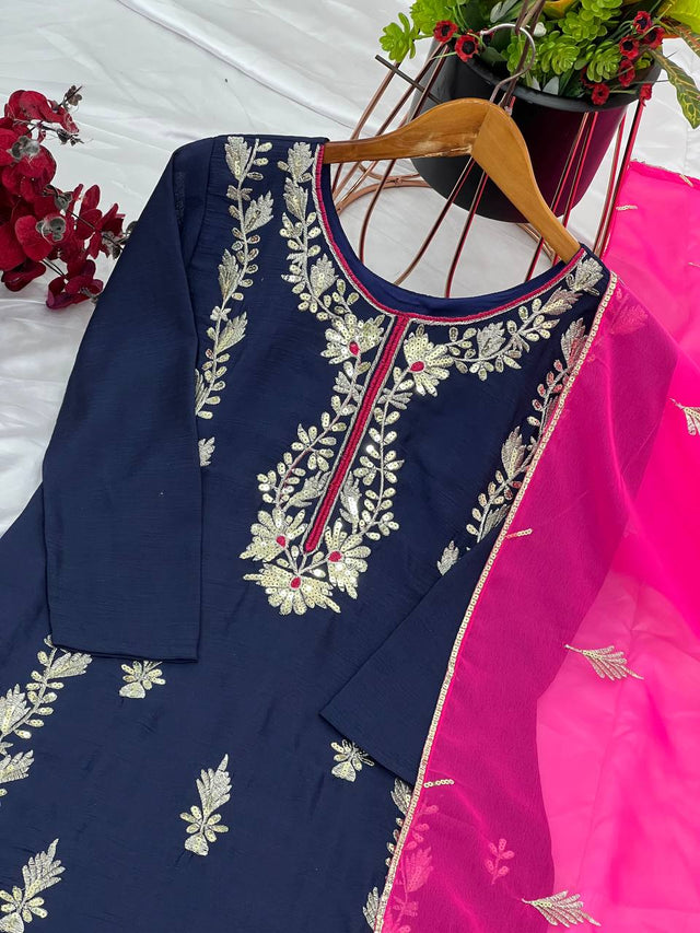 Good Looking Heavy Embroidery Sequence Work Navy Blue Color Salwar Suit