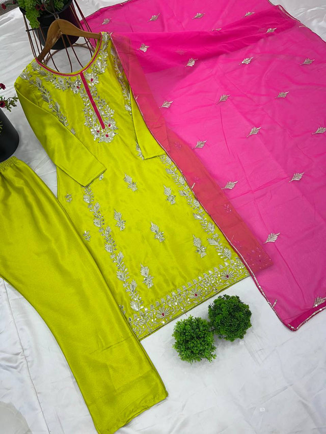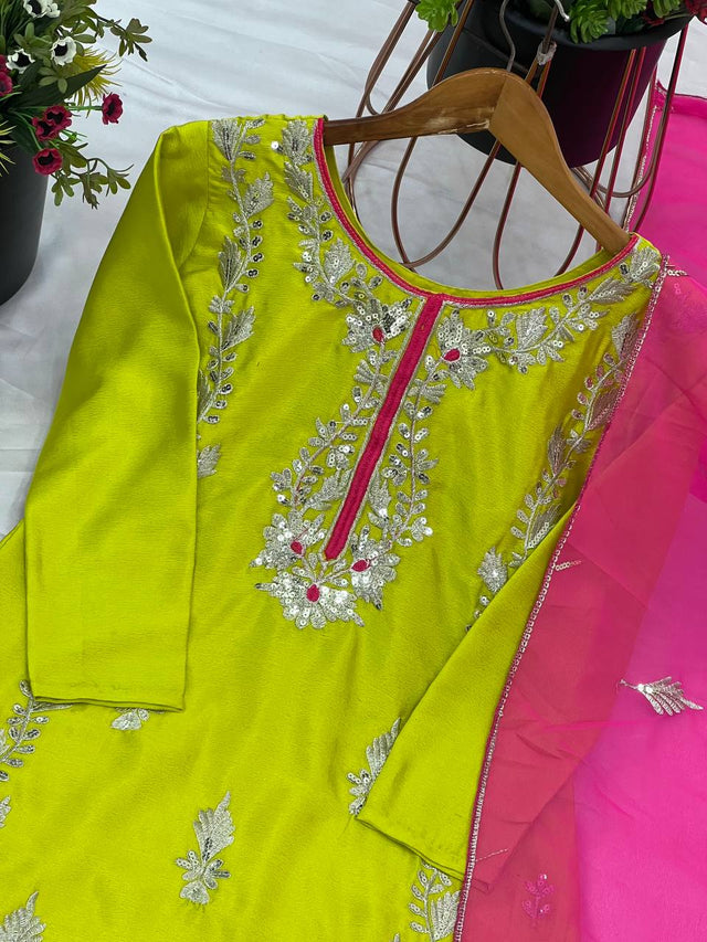Good Looking Heavy Embroidery Sequence Work Green Color Salwar Suit
