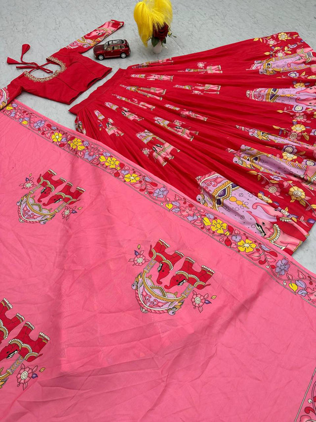 Good Looking Kalamkari Print Pink Color Lehenga Choli