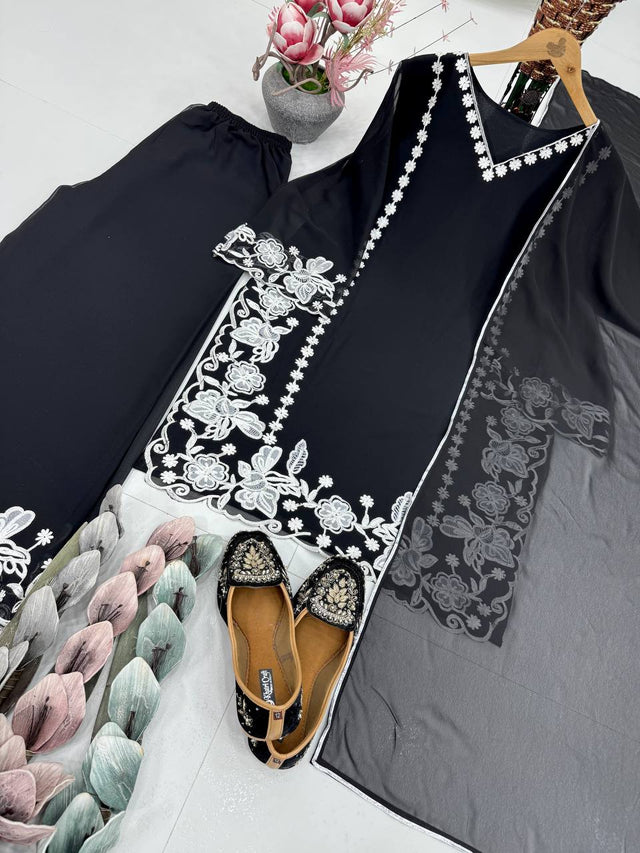 Gorgeous Black Georgette Embroidery Palazzo Style Salwar Suit