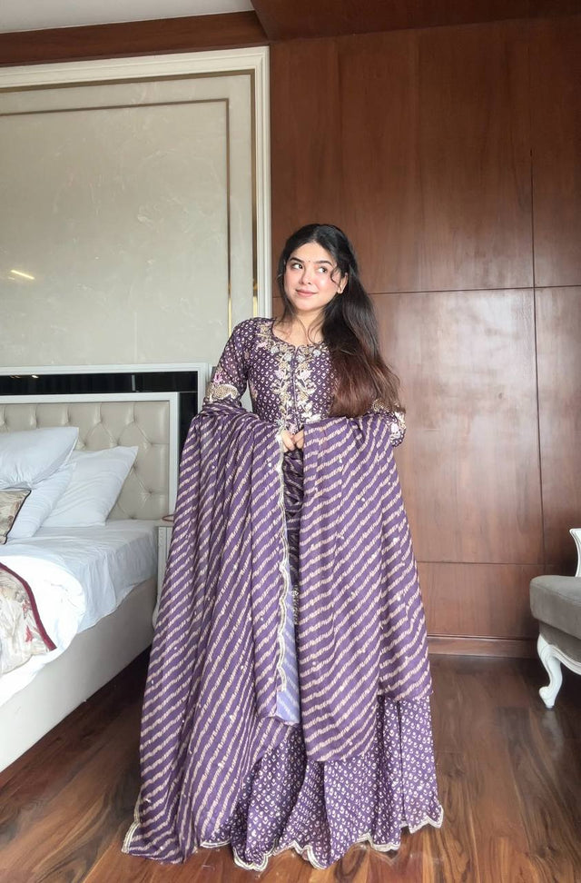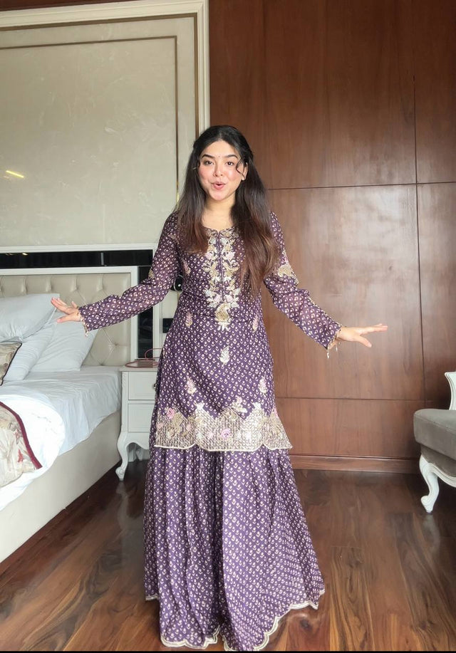 Gorgeous Purple Chinon Embroidery Work Sharara Suit