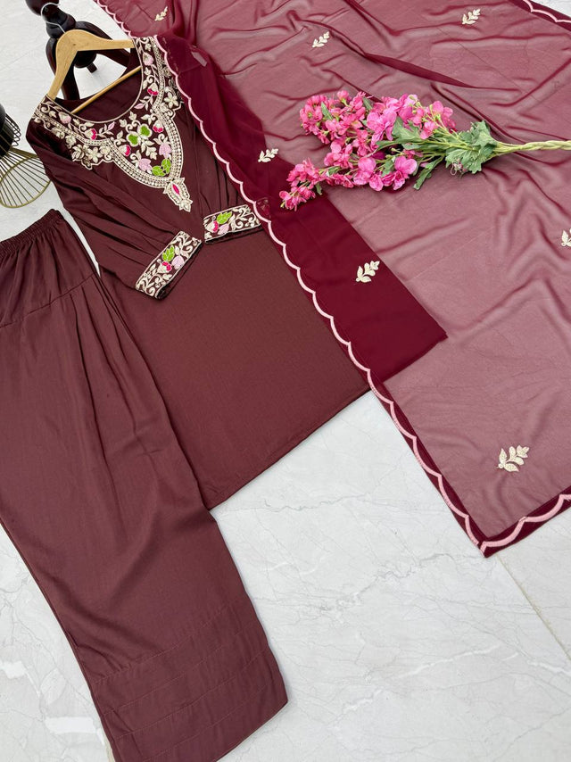 Gorgeous Sequence Work Wine Color Palazzo Suit