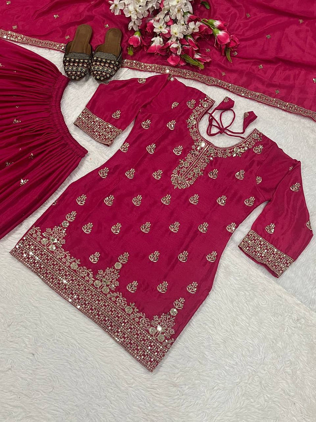 💃Sharara Palazzo : Heavy Chinon Silk With 5mm Sequence Embroidery Work.