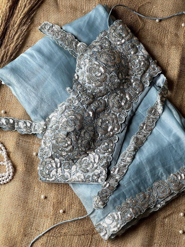 āBLOUSE Space Silk with sequins and Dori embroidery work (UNSTITCH)