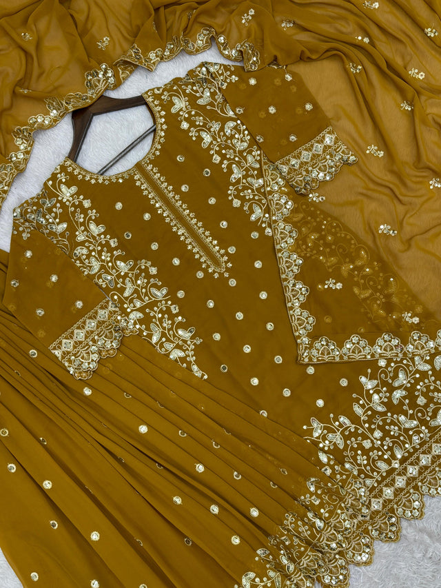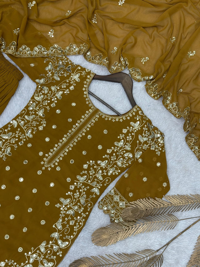 Gorgeous Mustard Color Sequence Work Sharara Suit