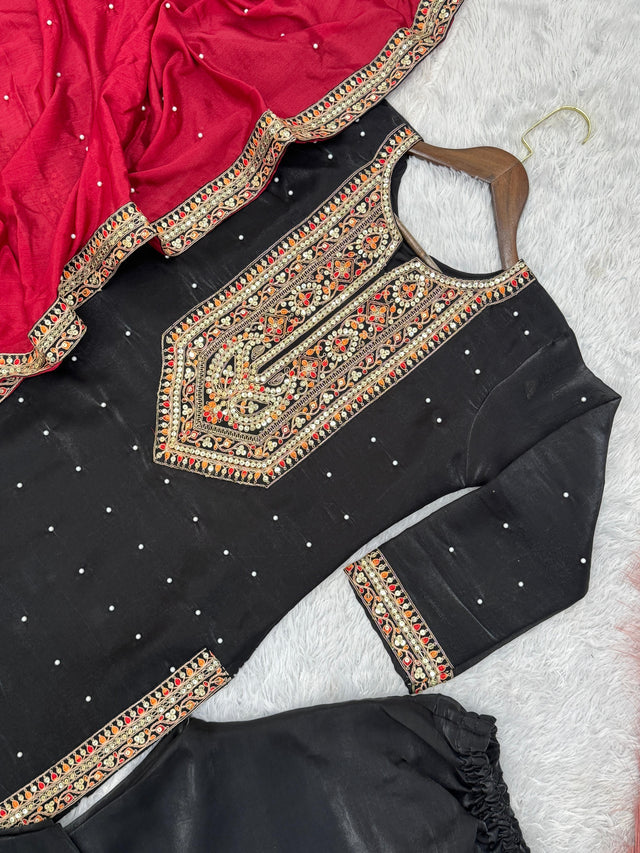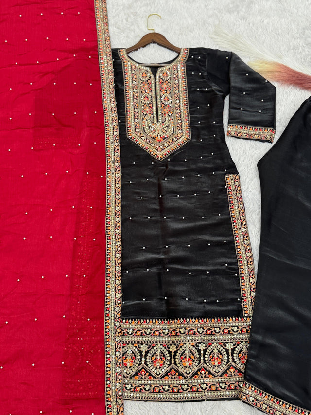 Dupatta Fabric : Heavy Chinon Silk With Embroidery Coding Dori-Sequence Work With Lace Border And Riveted Moti Work