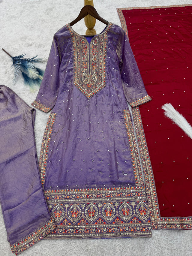 Graceful Frendy Silk Lavender Color Salwar Suit