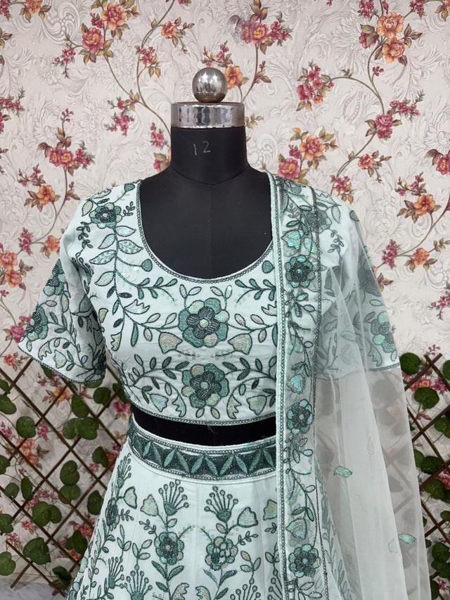 Lehenga : Premium Faux Georgette Embellished With Beautiful Thread Embroidery , Dori Work With Beautiful Heavy Sequins Work With Heavy Cancan And Canvas With Double Inner Covering With 3.5 Mtr Flair( Semi Stitched. )