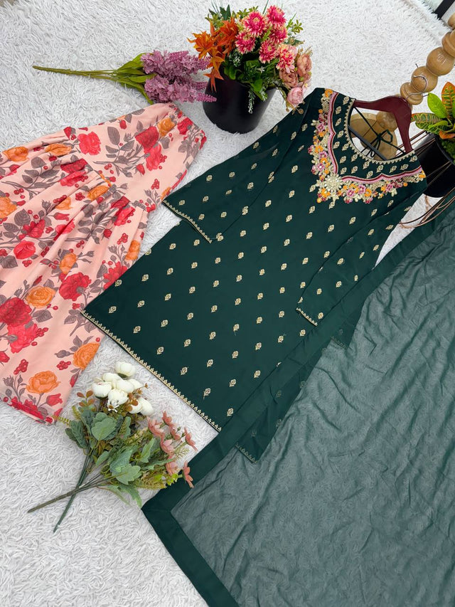 Green Color Georgette Outstanding Sharara Suit
