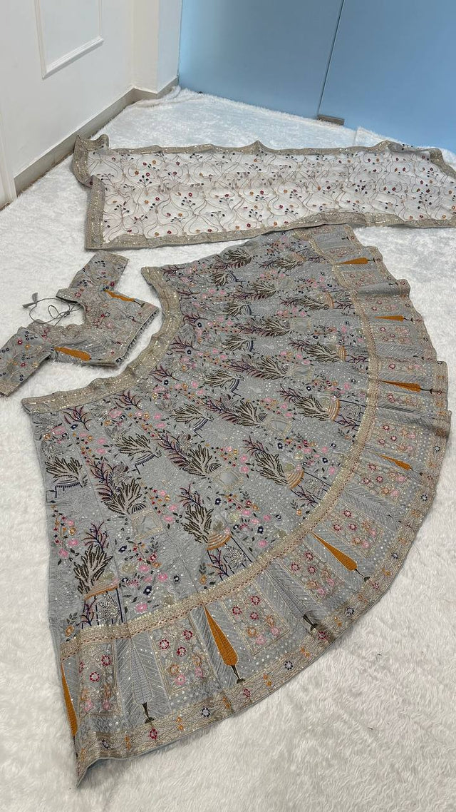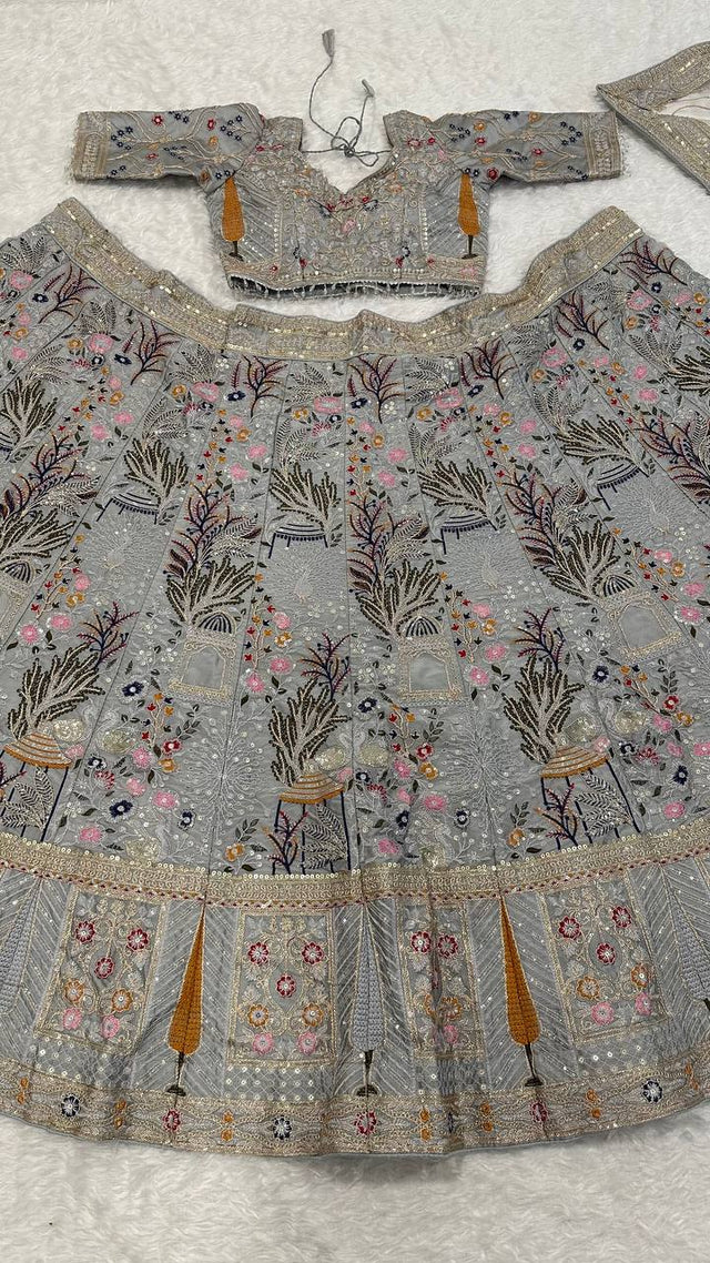 Grey Color Marriage Special Kasturi Silk Lehenga Choli