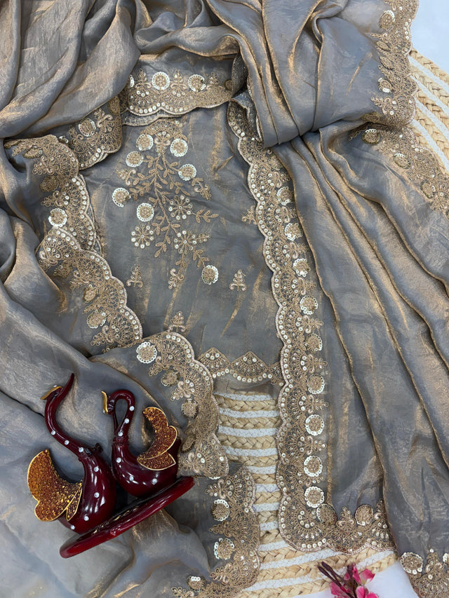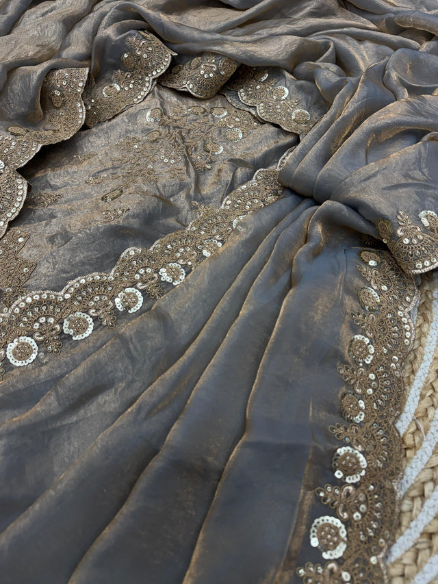 ⭕ BLOUSE- Space silk with beautiful sequence and cording embroidery work