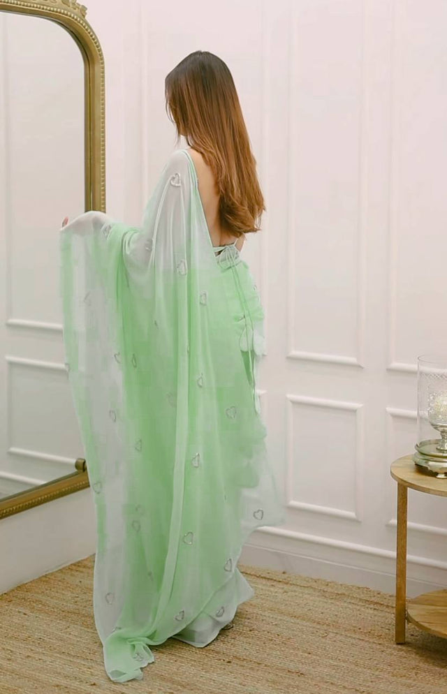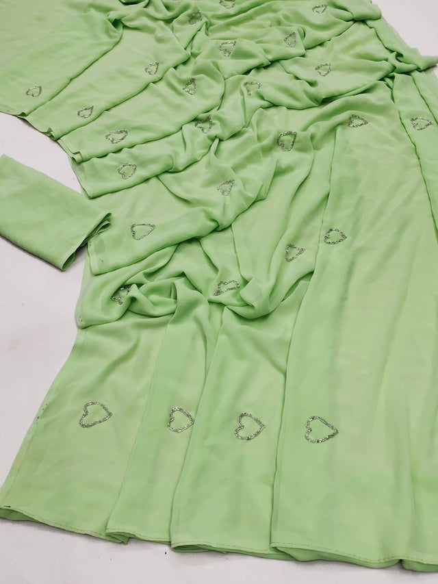 Hearts Shape Handwork Teal Green Color Unique Saree