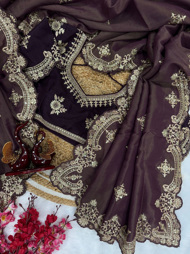 border with embroidery details Matched with a designer blouse, is a vision of majesty.