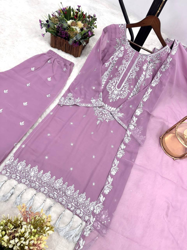 Lavender Color Georgette Marvelous Palazzo Suit