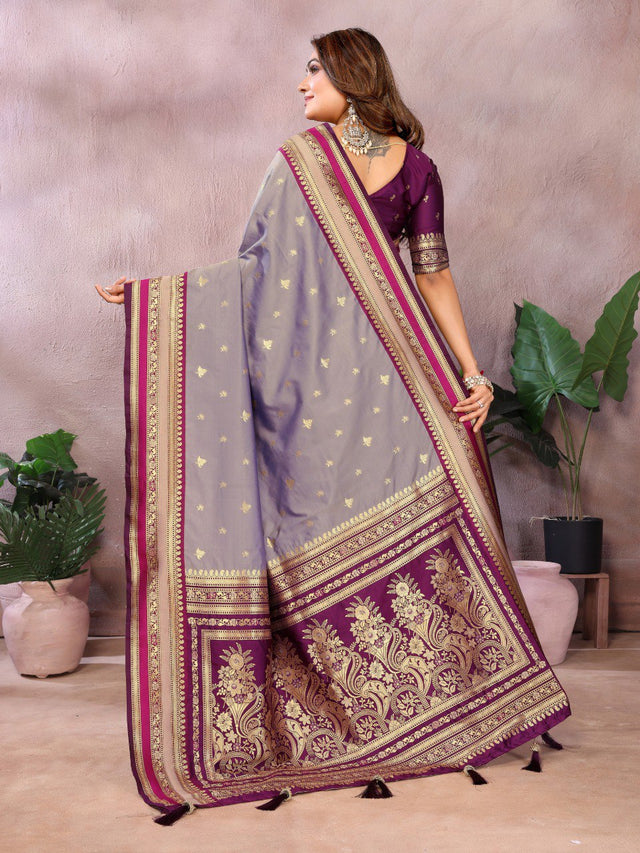 Lavender Color Festive Wear Silk Rich Pallu Saree