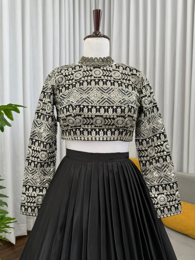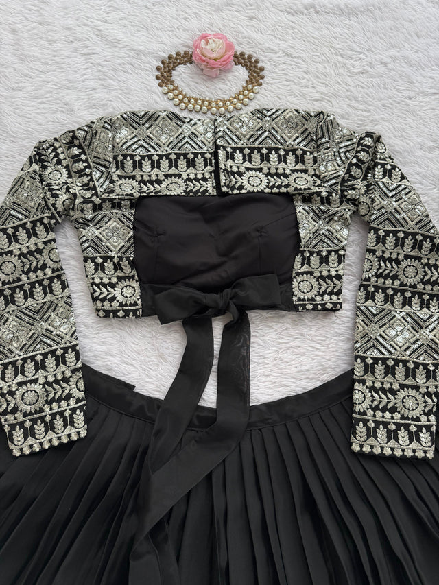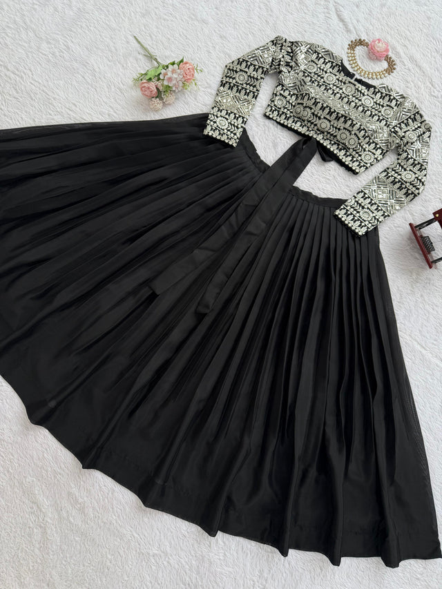 Lovely Black Color Fully Flared Organza Lehenga Choli
