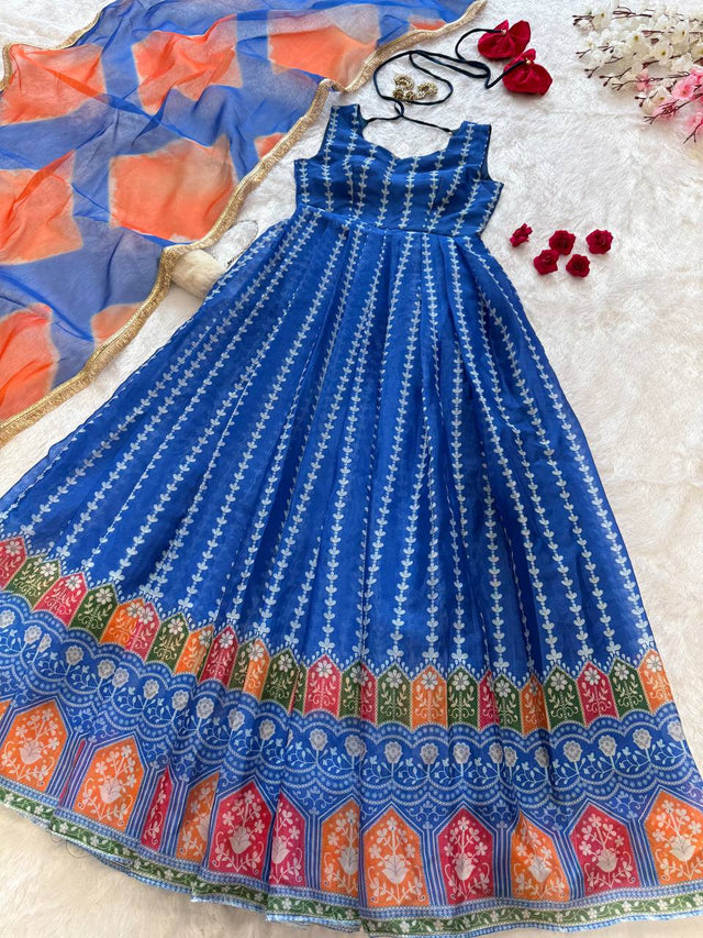 👗 Anarkali Gown - pure Jimmy organza silk digital printed padded gown with 54+gown length !! Huge Flair outfit ! 🔥