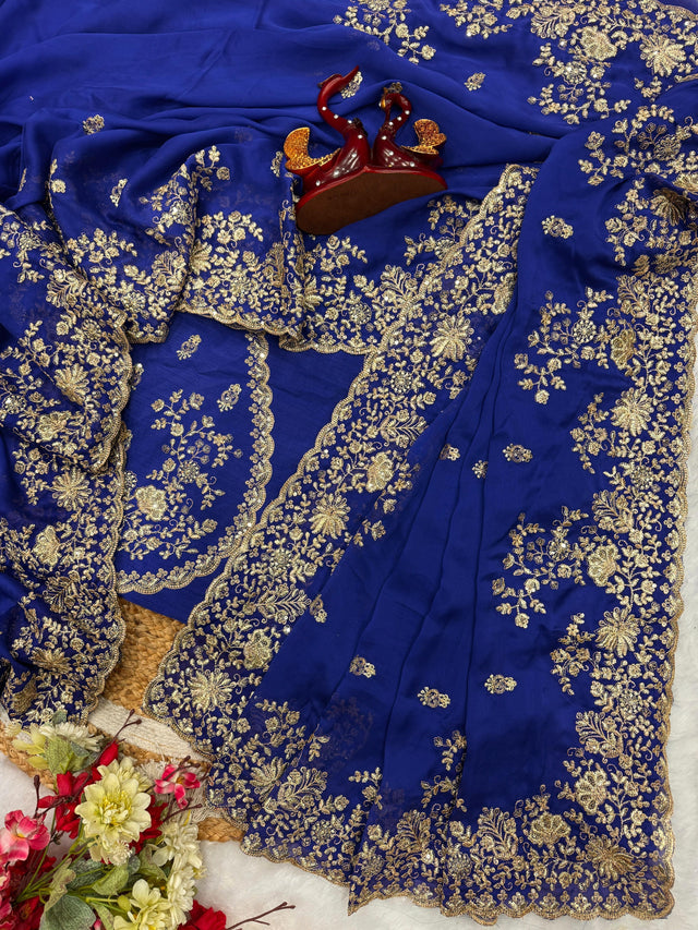 😍Exuding grace and sophistication, this Sequins work embroidered saree blends classic beauty with modern elegance. Each delicate petal in the design tells a story of timeless charm, making it the perfect choice for those who appreciate both tradition and contemporary style.