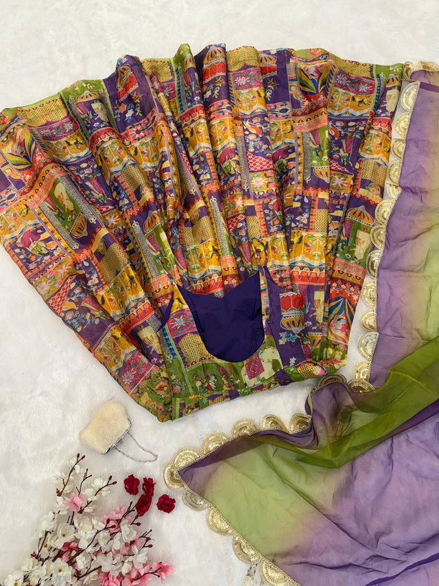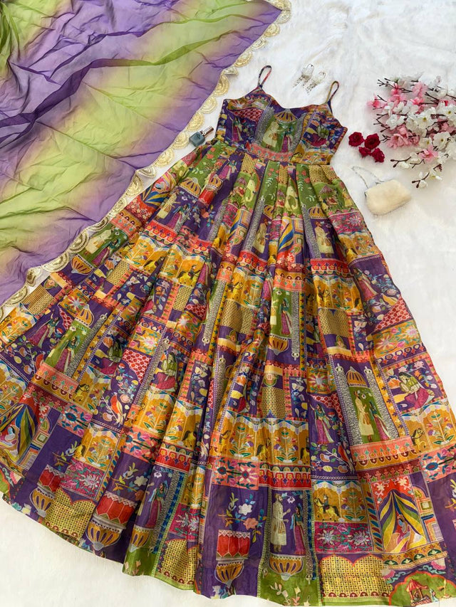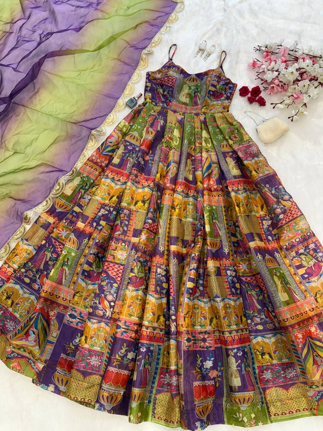 👗 Anarkali Gown - pure Jimmy organza silk digital printed padded gown with 54+gown length !! 8mtr Flair outfit ! 🔥