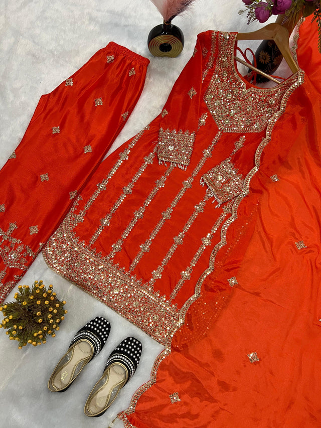 💃Palazzo fabric :Pure Heavy Chinon Silk With Heavy Embroidery Coding Sequence Work (Fully Stitched)