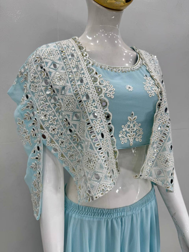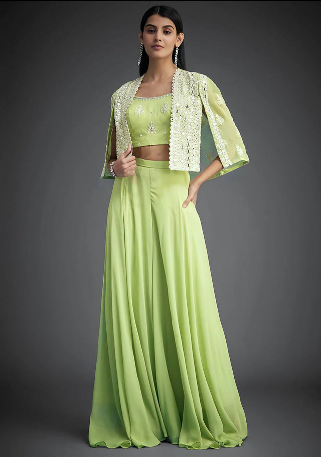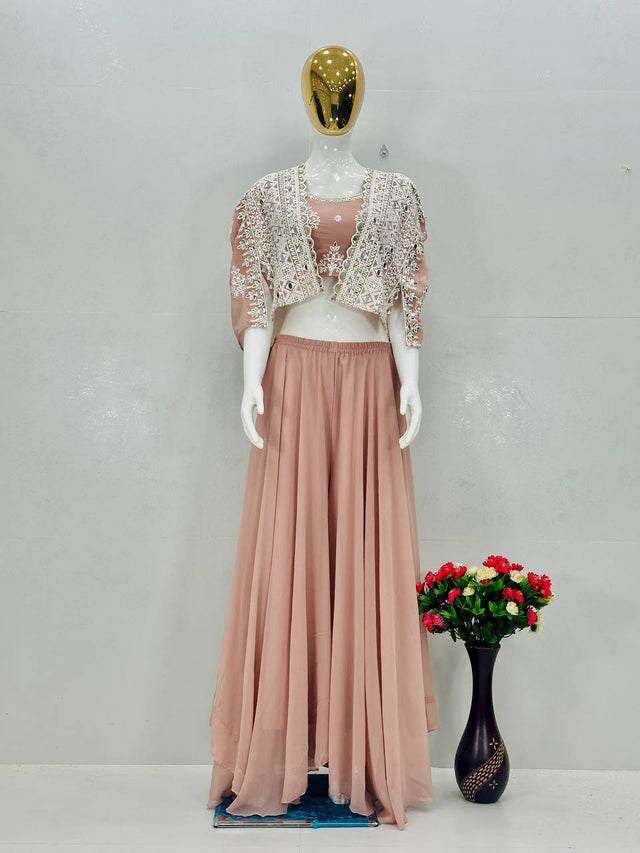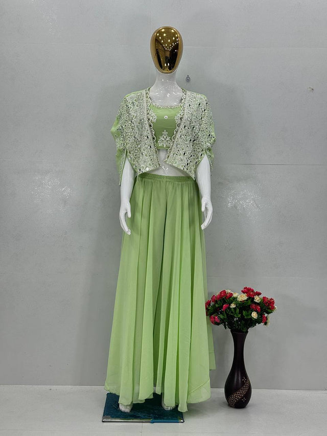 Lovely Pista Georgette Mirror Work Palazzo With Koti