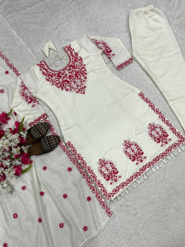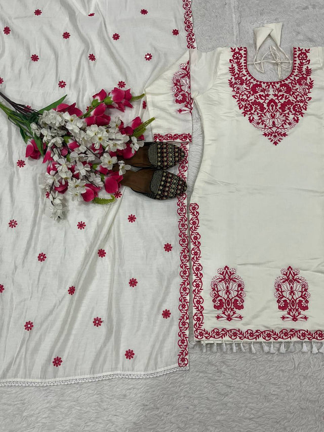 💃Pant fabric : Roman cotton Silk With Heavy Embroidery thread Work (Fully Stitched)