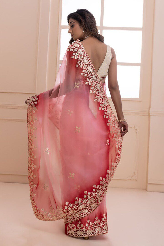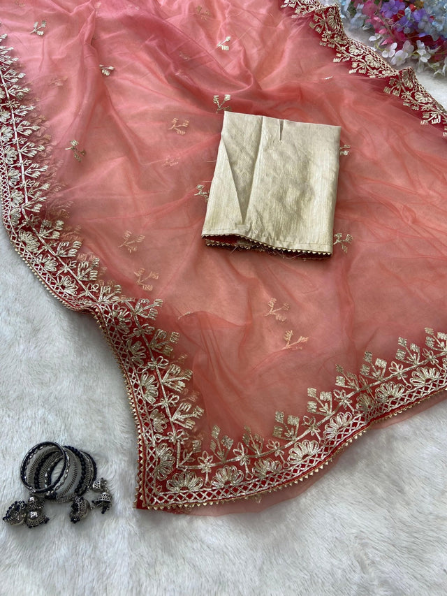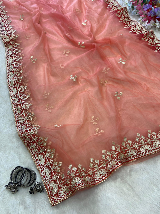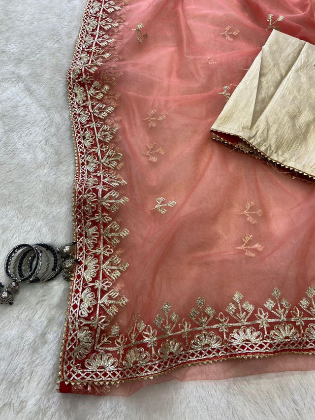 Saree : Premium Soft Padding Butterfly Net Embellished With Beautiful Hand Gota Work