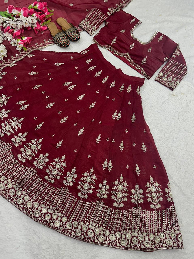 Marriage Special Heavy Work Maroon Color Lehenga Choli