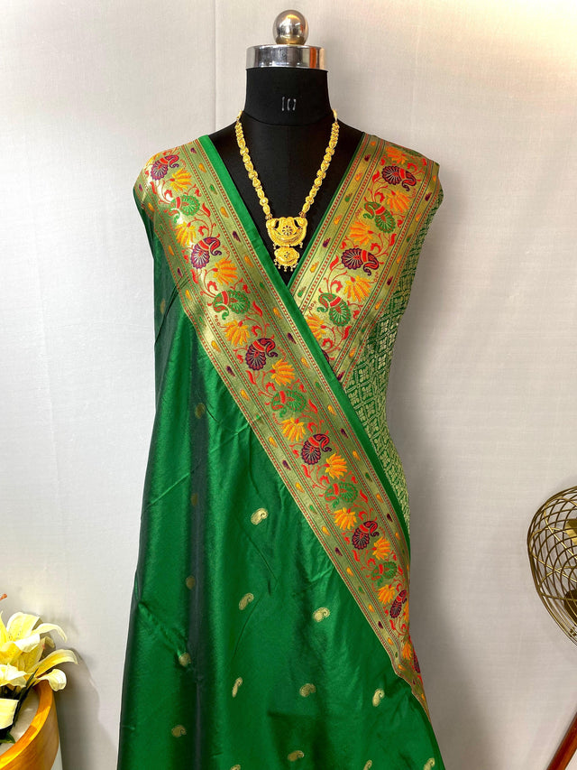 🥻👉🏻Description - Paithani silk sarees with all over meenakari Keri weaving design and designer border.