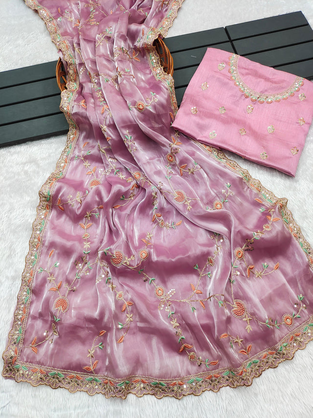 Mesmerizing Embroidery Work Pink Color Saree