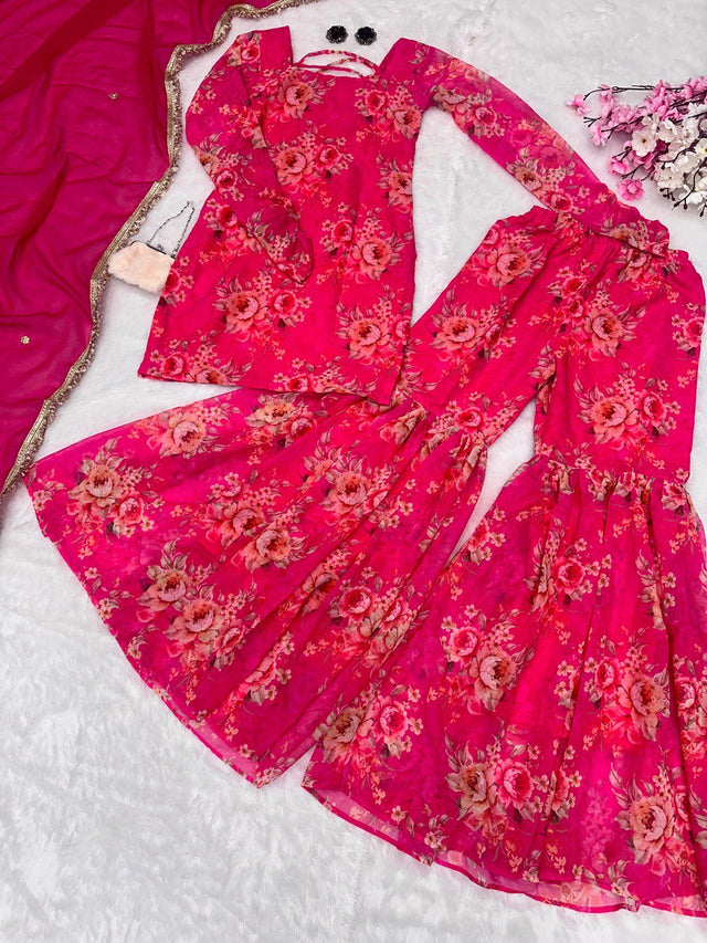 Mesmerizing Pink Georgette Digital Print Sharara Suit