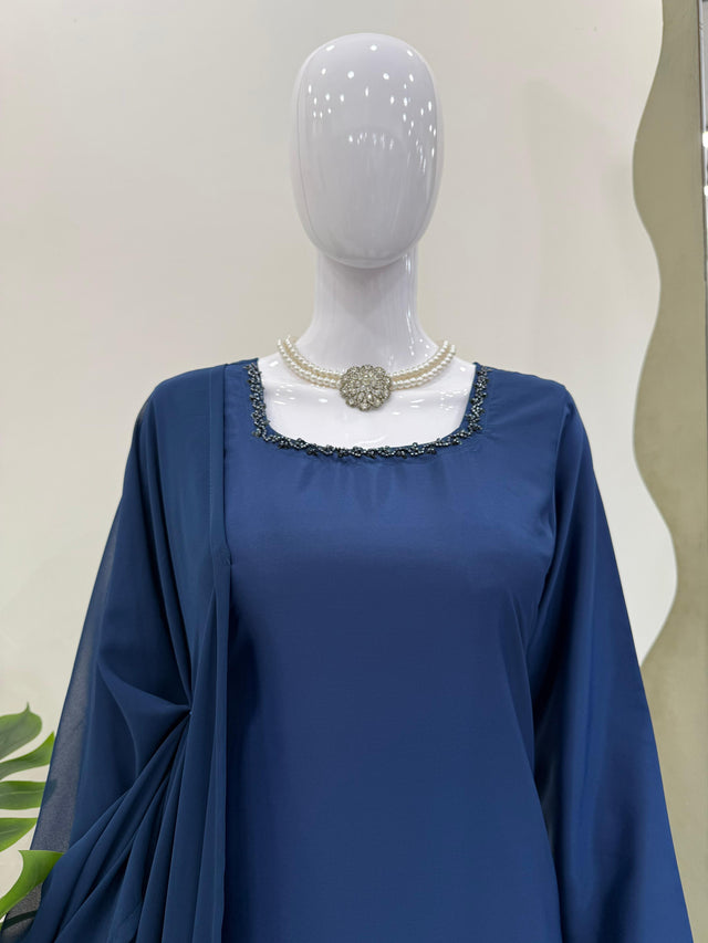 Navy Blue Color Beads Work Patiala Style Salwar Suit