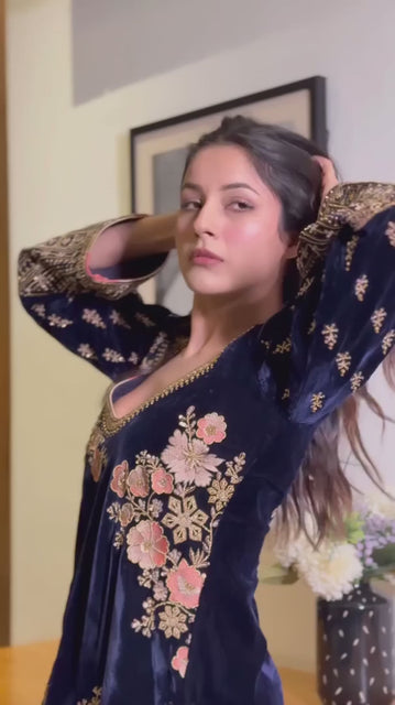 New Velvet Party Wear Top-Dupatta Set with Heavy Embroidery