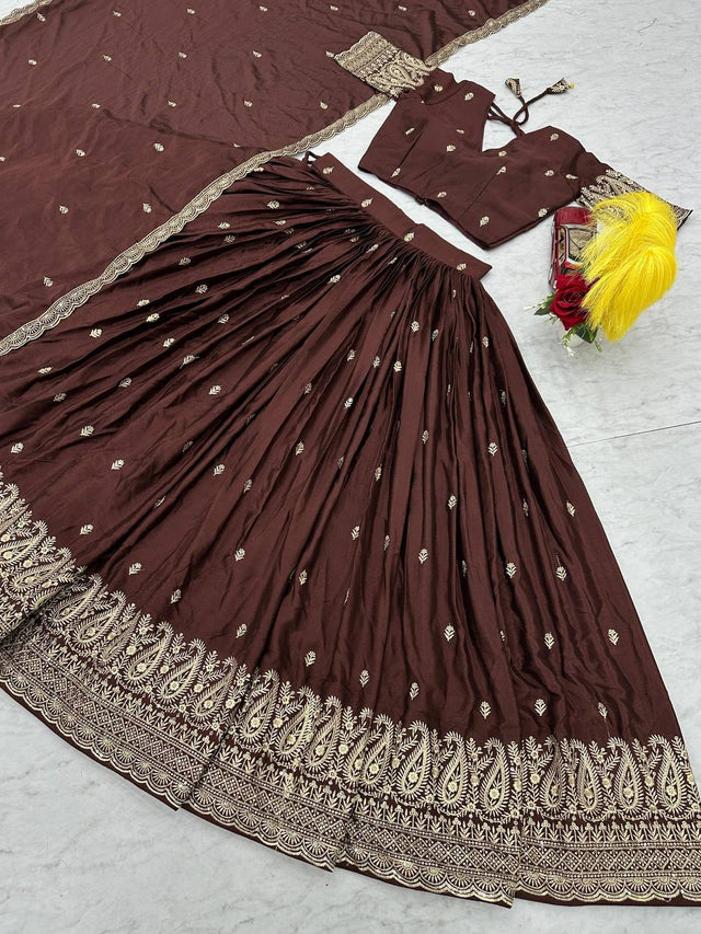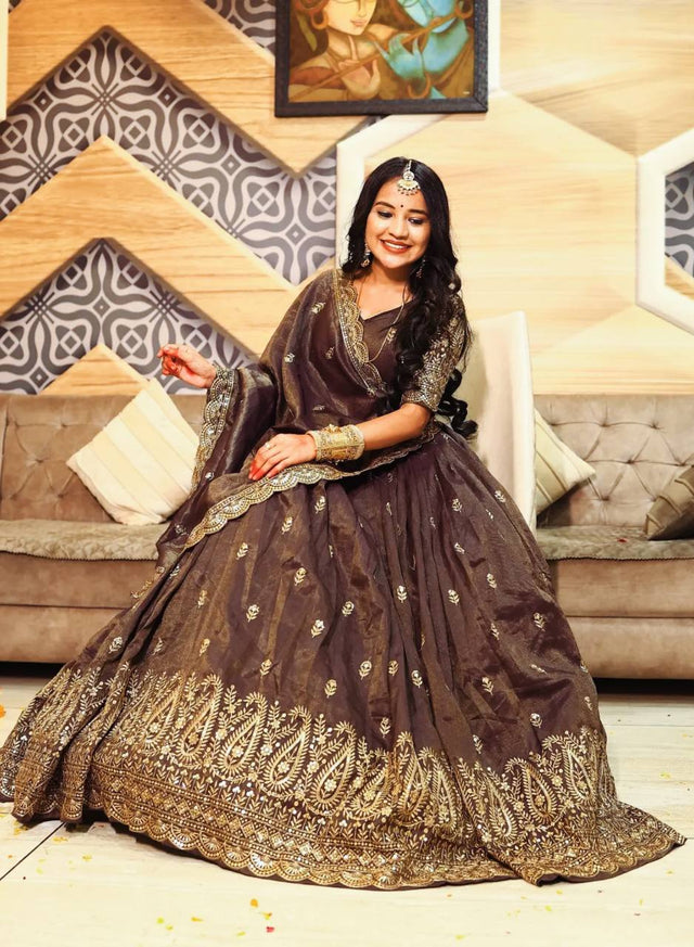Occasion Wear Heavy Work Brown Color Lehenga Choli