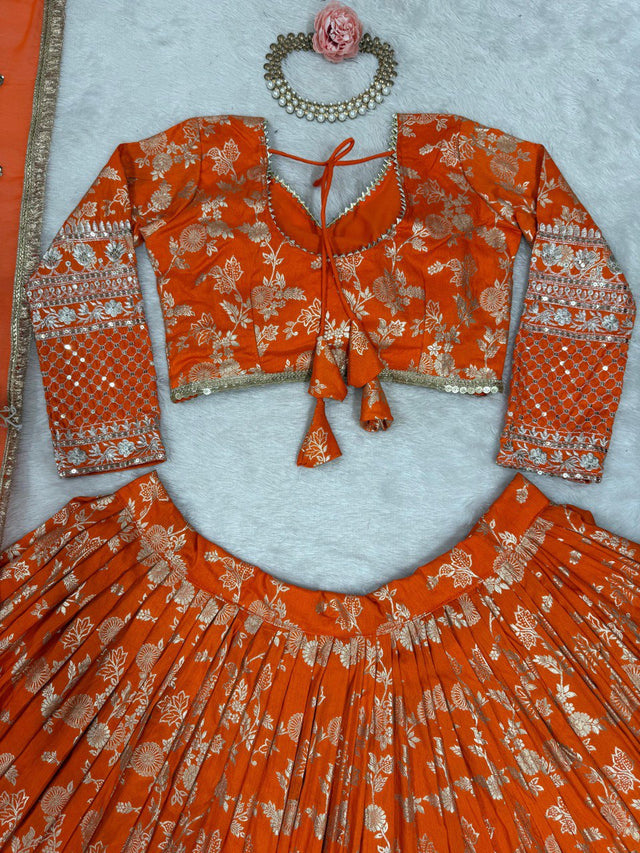Occasion Wear Jacquard Work Orange Color Lehenga Choli