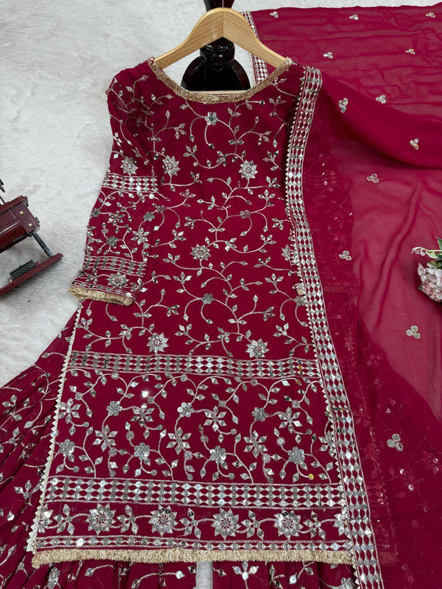 Occasion Wear Pink Color Sequence Work Sharara Suit