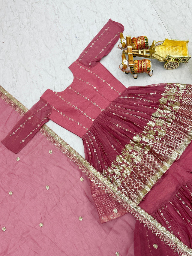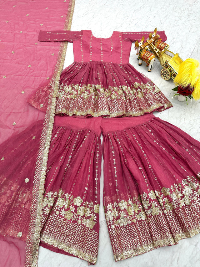 Opulent 3mm Sequence Work Pink Color Sharara Suit