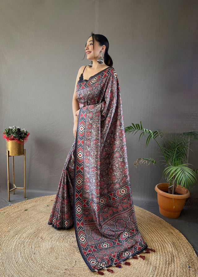 Opulent Grey Color Digital Print Saree