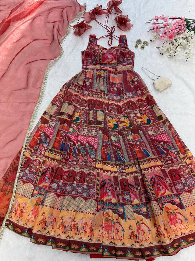 * Anarkali Gown * - pure Jimmy organza silk digital printed padded gown with 54+gown length !! 8mtr Flair outfit ! 🔥