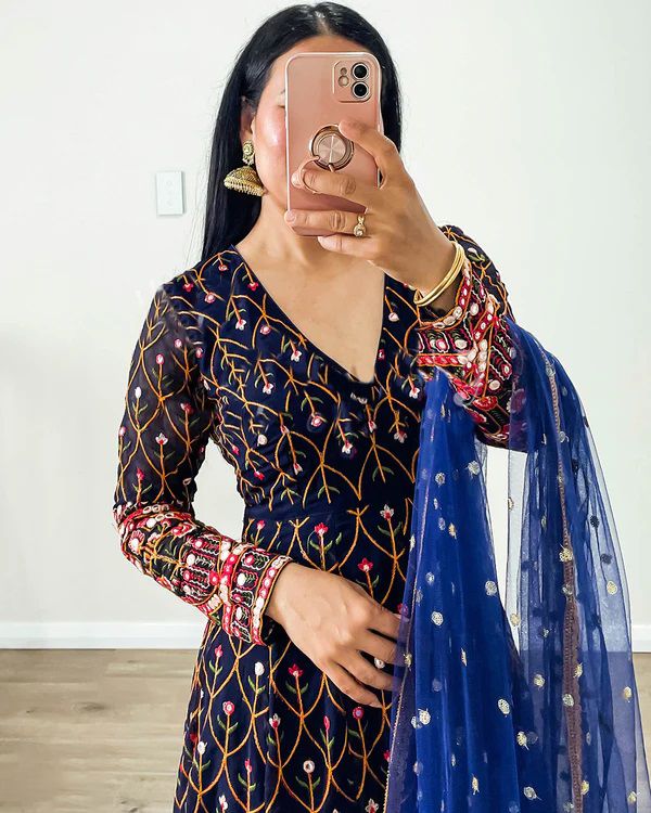 Outstanding Blue Color Sequence With Dori Latkan Anarkali Gown