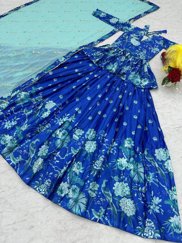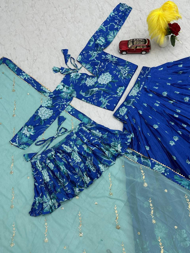 Outstanding Digital Print Blue Color Lehenga Choli